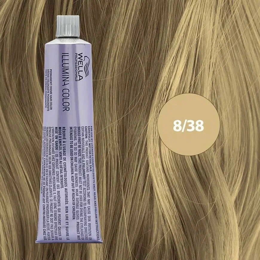 Описание: Wella Professionals Illumina Color 8/38 - это стойкая крем-краска для волос, которая обеспечивает яркий и насыщенный цвет, а также глянцевый блеск при любом освещении.